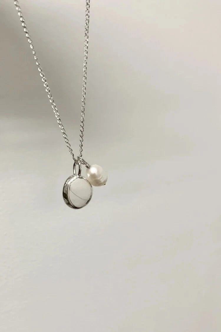 Hanging on a sturdy silver curb chain; this piece is accompanied by an adorable (and removable) freshwater pearl charm.