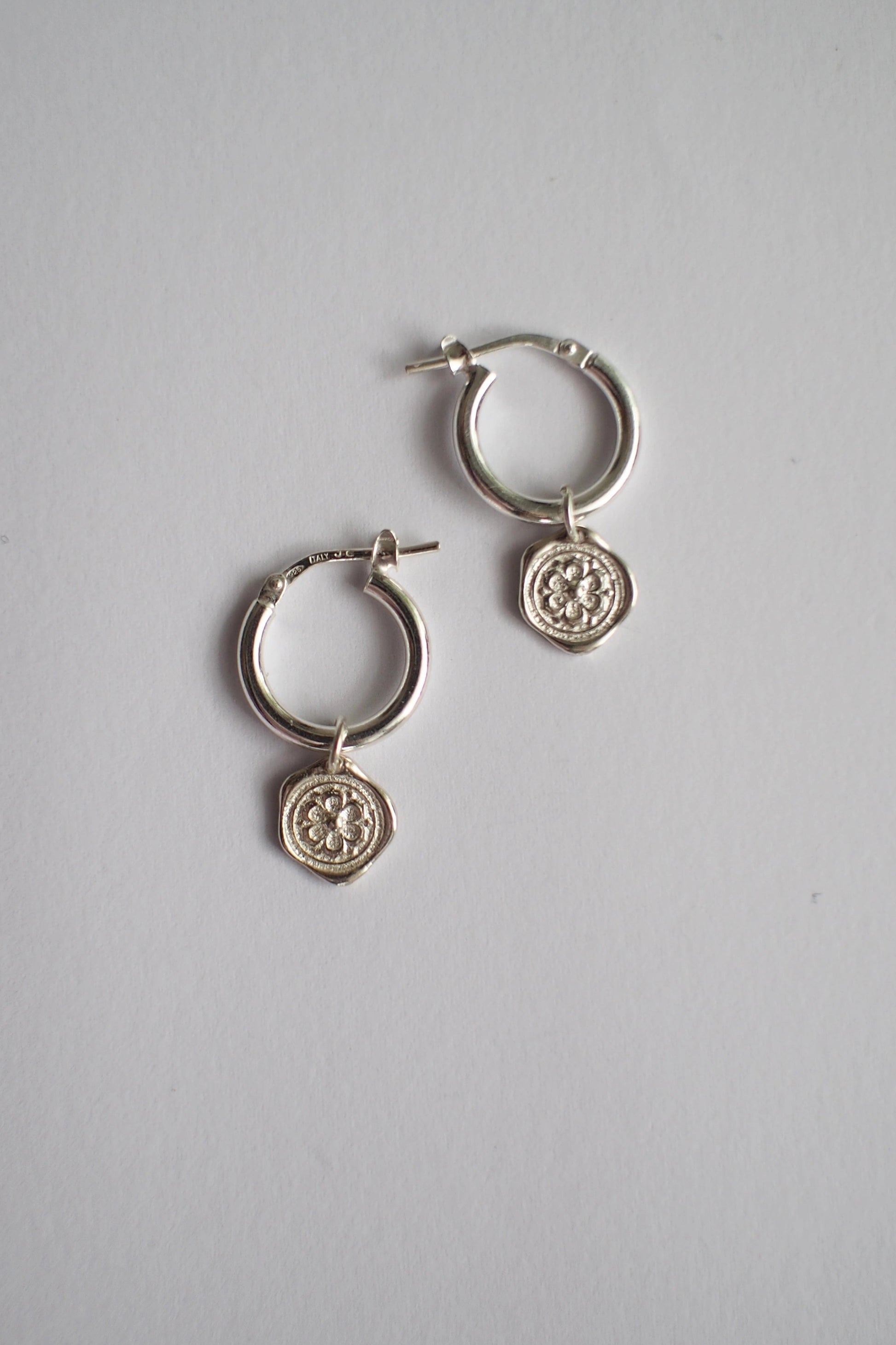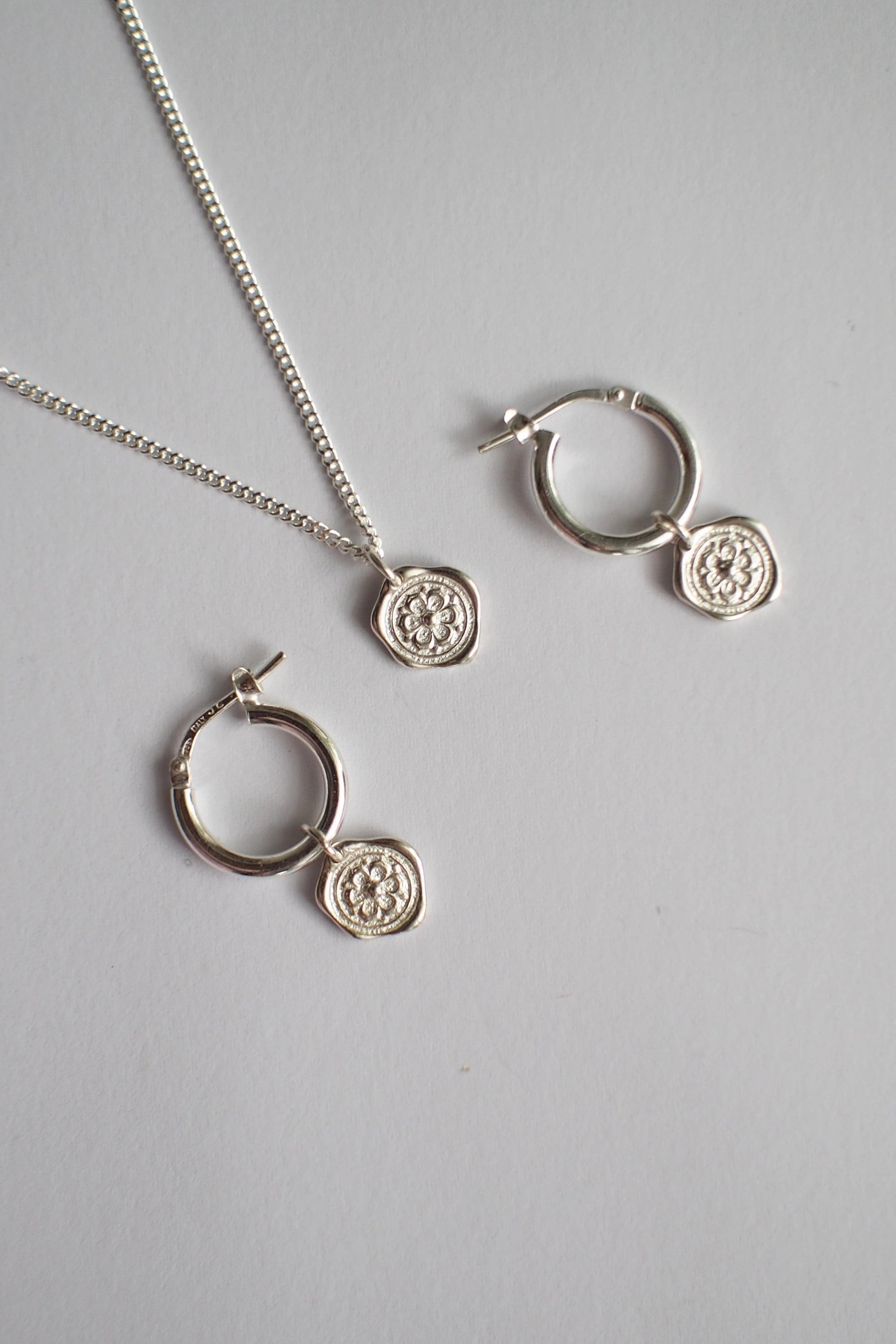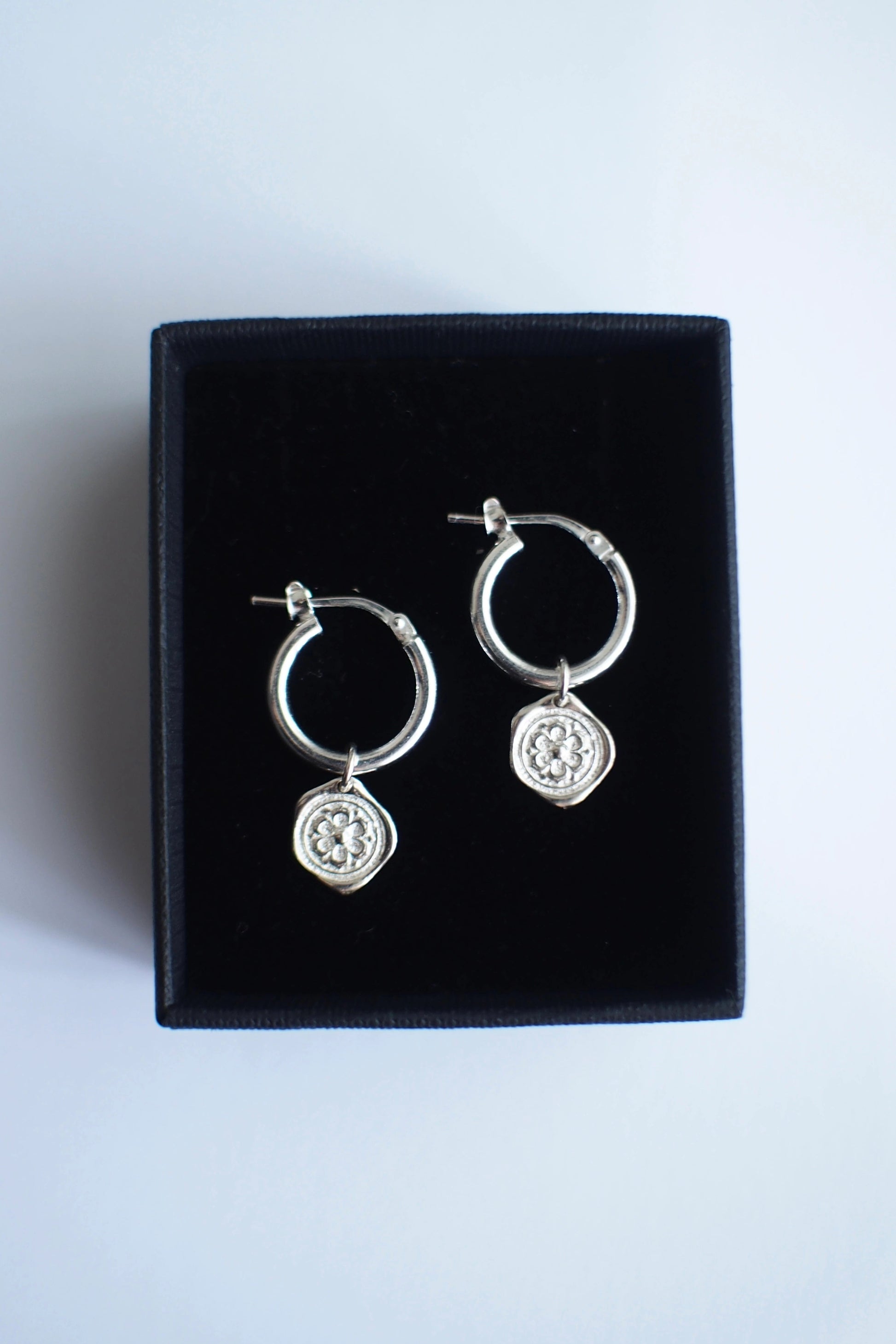 - Hoops 14mm outside diameter. Pendant approx. 9-12mm diameter.