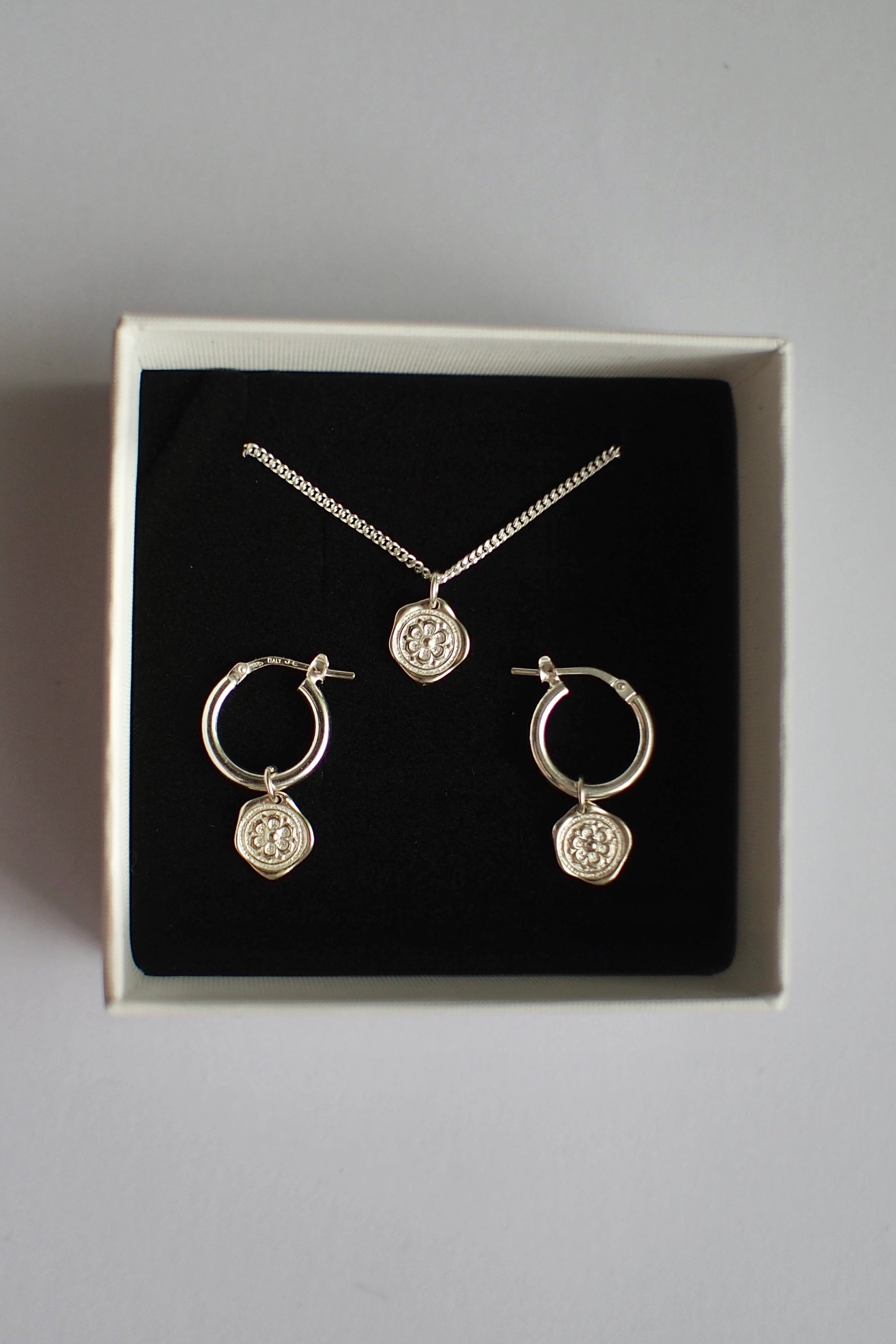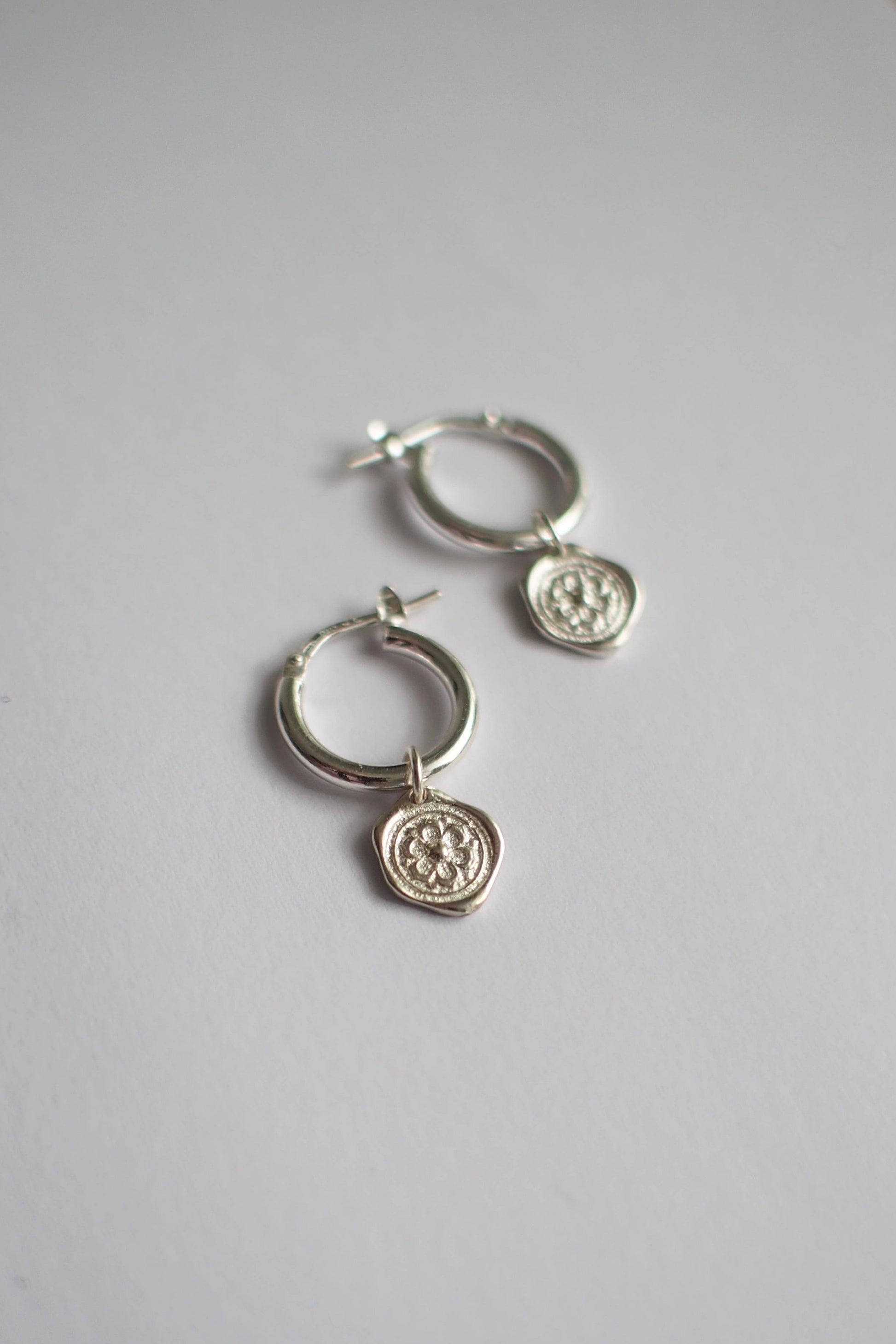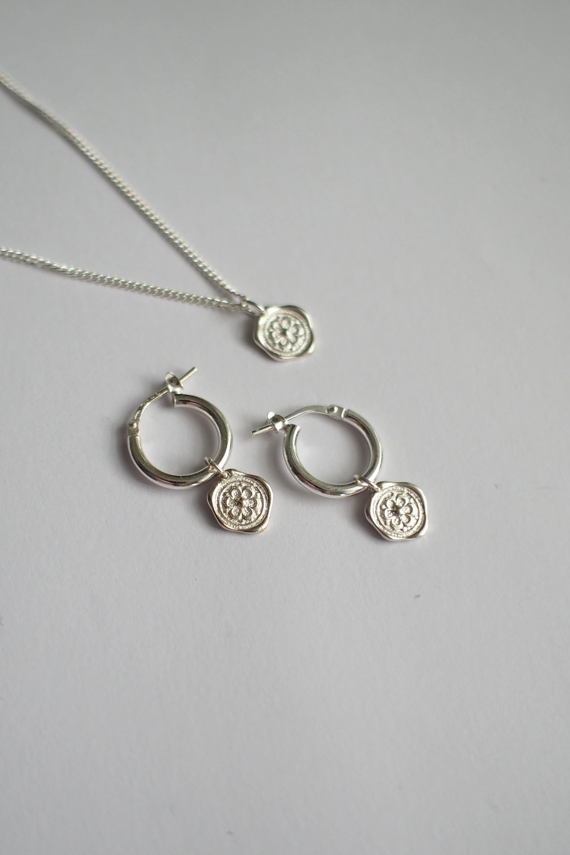 - Hoops 14mm outside diameter. Pendant approx. 9-12mm diameter.
